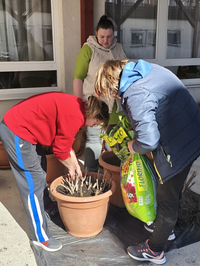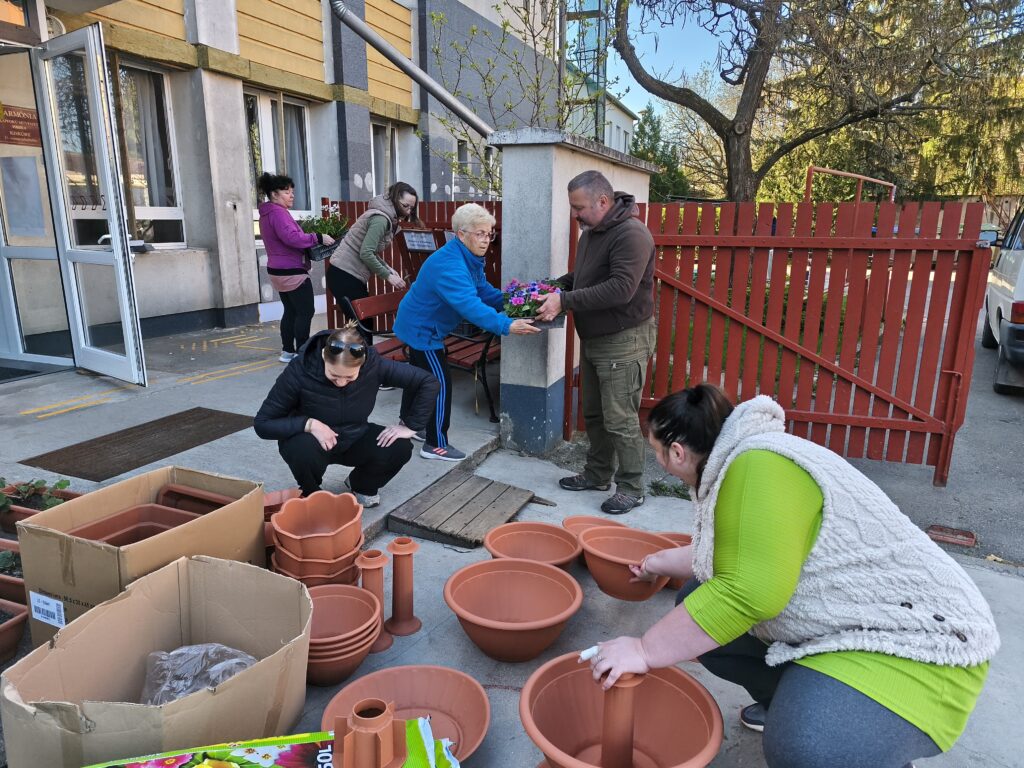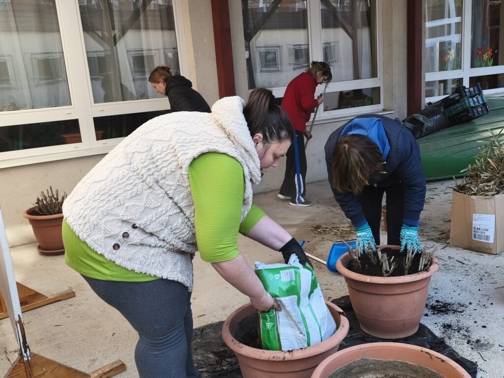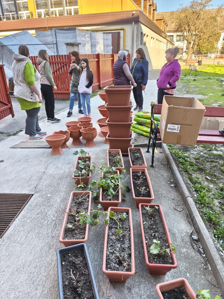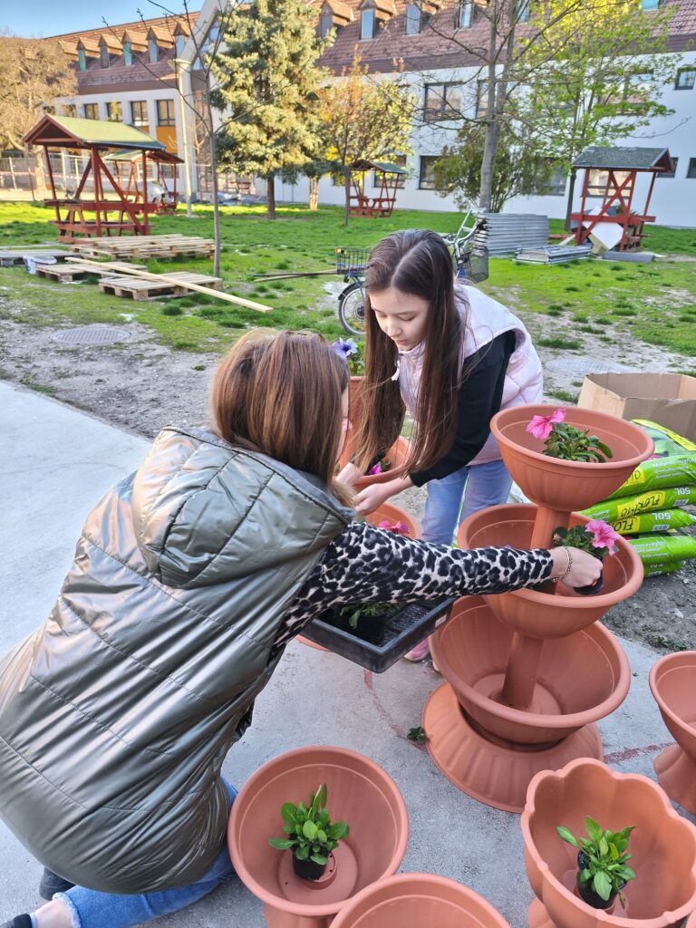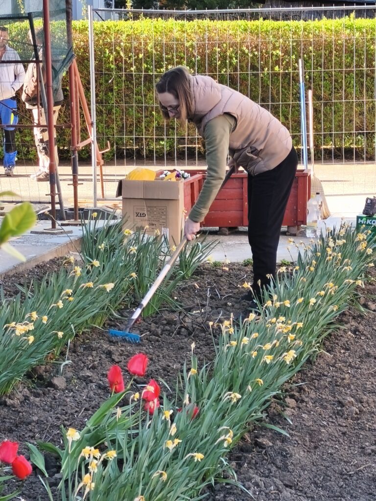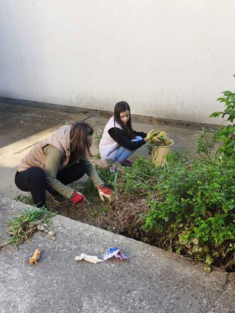 Muskátlikat és petúniákat ültettünk, leandereket metszettünk és ültettünk át, virágoskertben gyomláltunk és kapáltunk, iskolaudvaron gereblyéztünk össze a gallyakat és az avart.