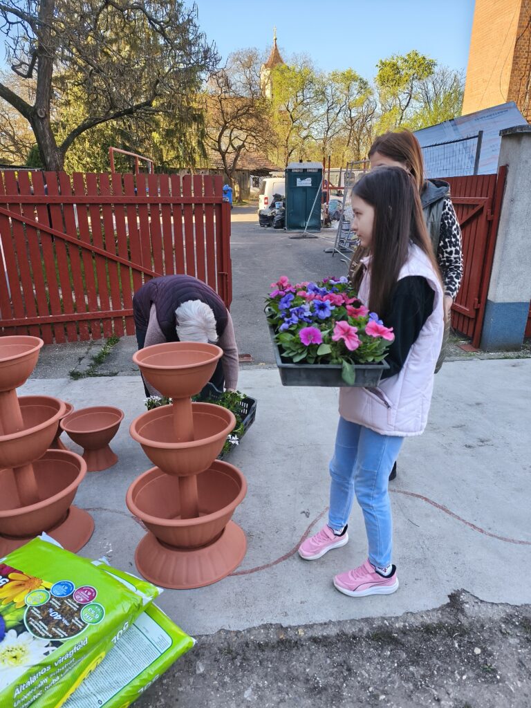 Igaz, az iskolafelújítás miatt még egyelőre nem kerültek a beültetett virágok az eredeti helyükre, de rövidesen a munkálatok végeztével minden növényünk az eredeti helyén pompázhat majd.